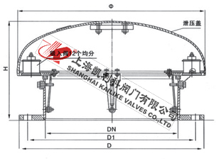 HXP2、HXP1石油儲罐緊急泄壓人孔正常工作情況下,HXP2型壓力排放吸入閥、HXP1型壓力排放閥基本保持密封狀態(tài),儲罐處于正常壓力。當呼吸閥正常工作滿足不了因意外原因造成儲罐壓力急劇超壓時,HXP2型壓力排放吸入閥或HXP1型壓力排放閥的泄壓蓋自動頂開,進行緊急泄壓,使罐內壓力保持正常;當罐內壓力急劇減壓或超真空時,吸入閥便開啟急劇吸入大氣、維護罐內正常壓力,以保護儲罐安全。所不同的是HXP2型既可吸入、又可排放;而HXP1型只能排放,不能吸入,請用戶在選型時予以區(qū)別。
