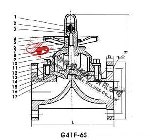 G41F-6S型PCV隔膜閥、PVC塑料隔膜閥適用于腐蝕介質的輸送及截流、流量的調節(jié),根據材質不同使用溫度-14℃~100℃、-40℃~140℃。過流部件C采用RPP或PVDF注塑件組裝而成,耐腐蝕性能優(yōu)良,操作方便,體量輕,能代替不銹鋼閥門。密封件膜片采用F46或PFA制造,耐折次數≥1200次,耐腐蝕性能與F4相當。