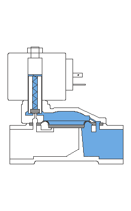 1)常閉型,通電時電磁線圈產(chǎn)生足夠的電磁力把運(yùn)動部件(由磁芯、閥桿、上下部的膜片/密封件構(gòu)成)從閥座上提起,閥門開啟;斷電時彈簧力把運(yùn)動部件壓在閥座上,閥門關(guān)閉。